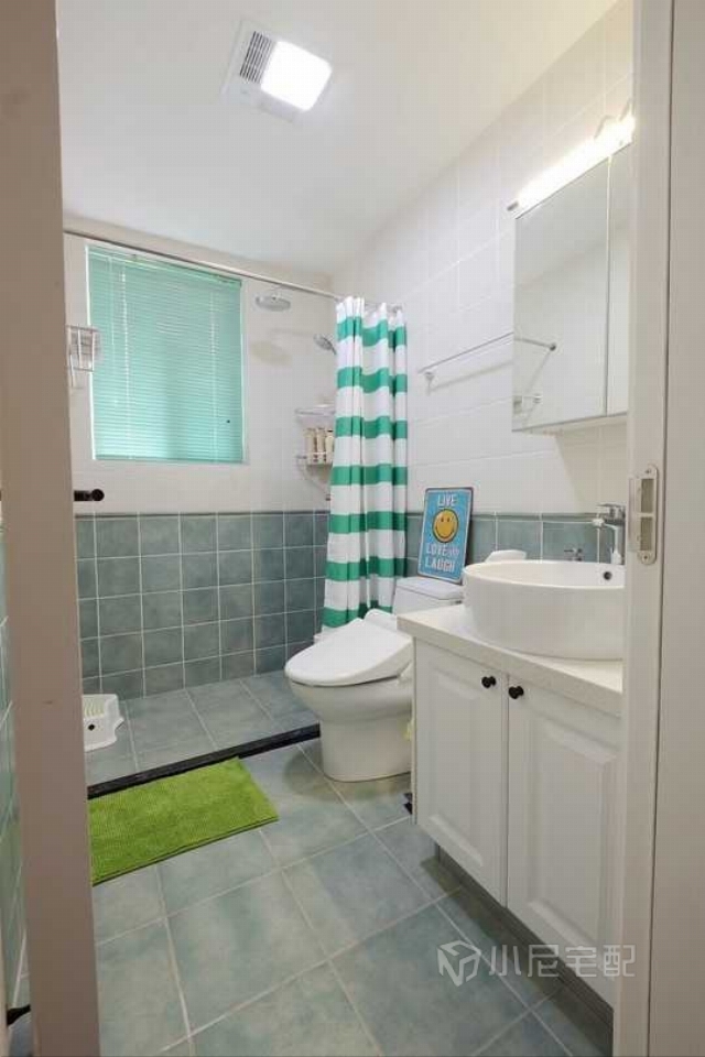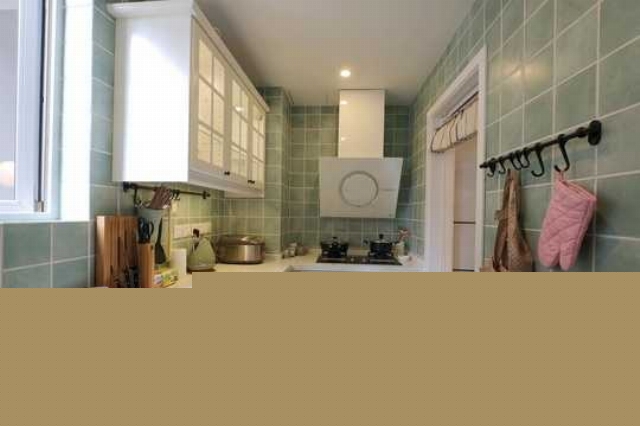 綠色的小方磚搭配白色的櫥柜,簡潔干凈。
