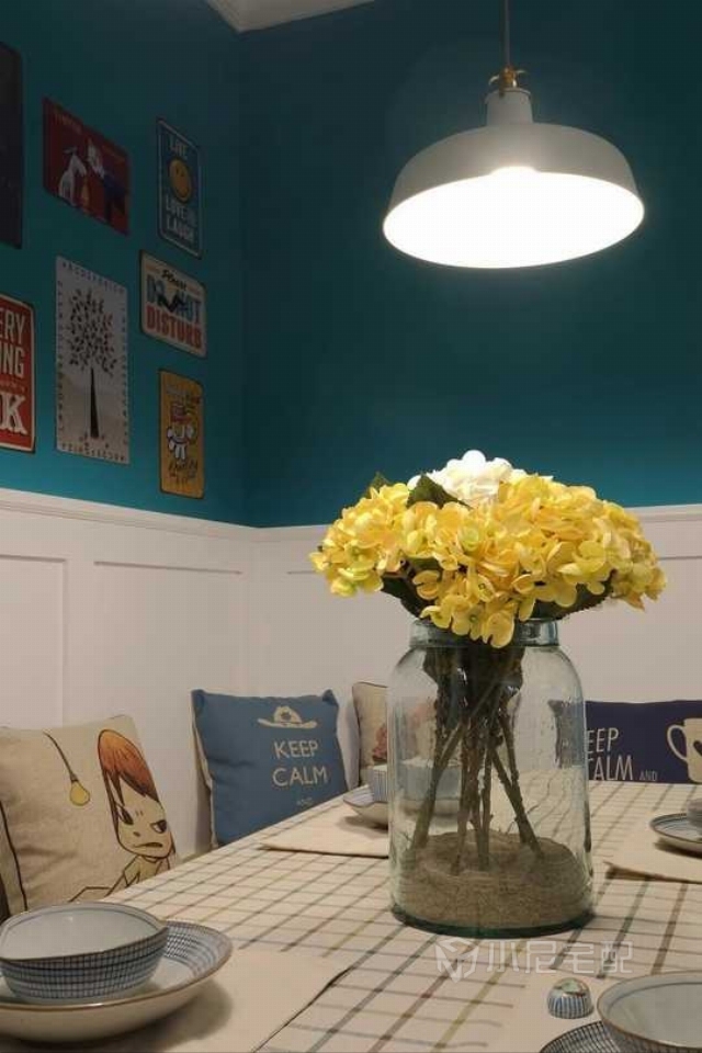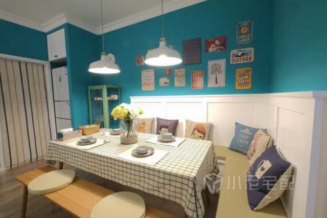 白色的靠背搭配藍(lán)色的墻面,很有小咖啡館的感覺。