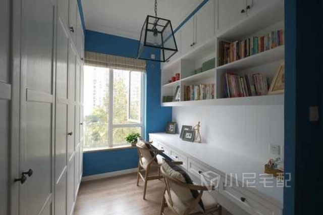 書房兼具衣帽間,一整面墻的大衣柜,滿足業(yè)主所有收納。