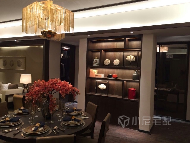 餐廳的簡潔適用背景造型搭配復古的地面拼花,高端的吊燈,讓就餐成為一種享受。