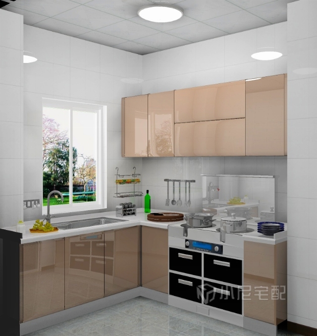 廚房的整體櫥柜用比較鮮明的明黃色,讓整個(gè)廚房顯得整體干凈利落