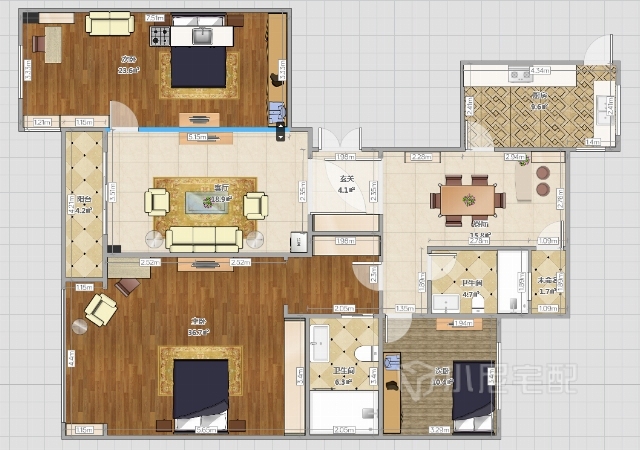 115㎡#三室兩廳兩衛(wèi)#簡約