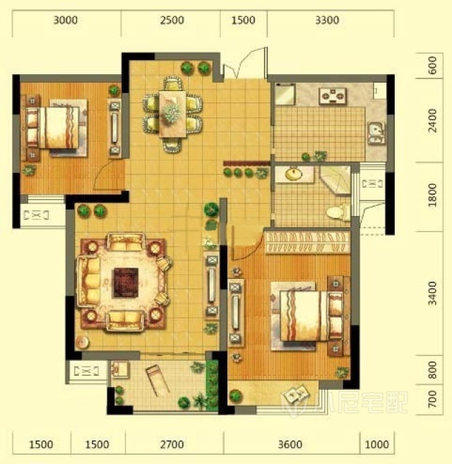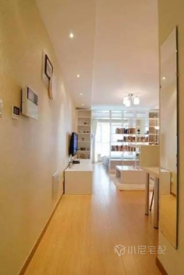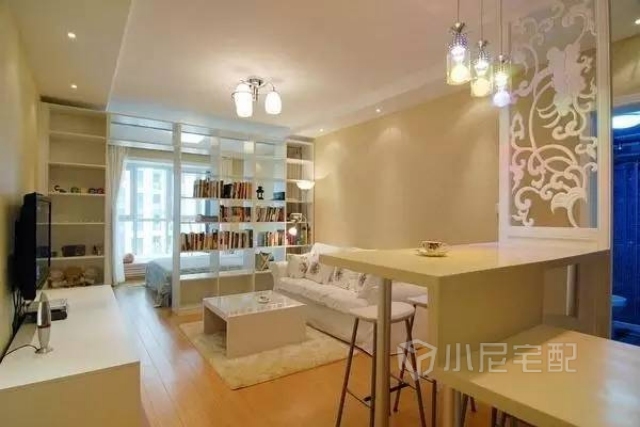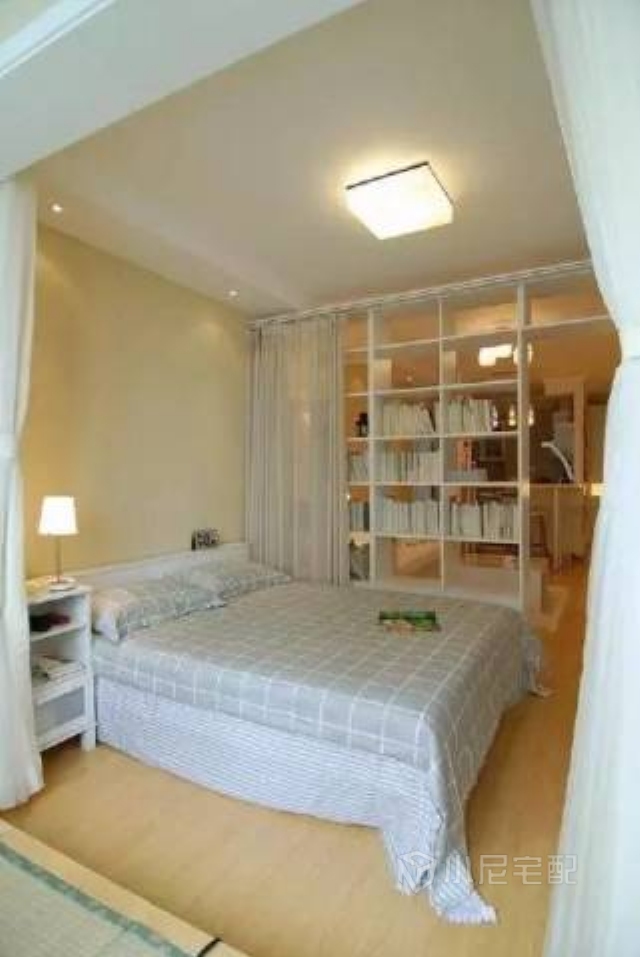 一個(gè)展架就可以巧妙的把客廳和臥室分開(kāi)。