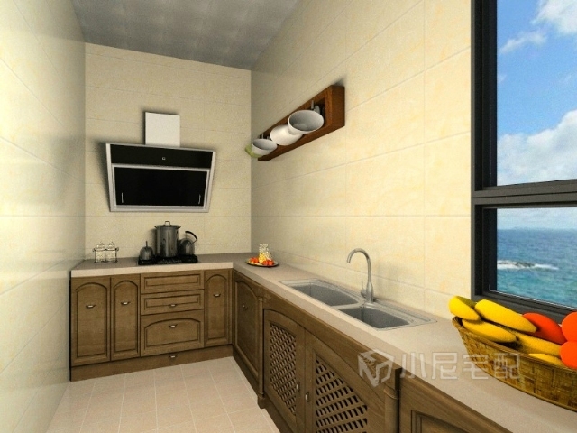廚房采用了L型櫥柜設計,將各個角落都利用了起來。