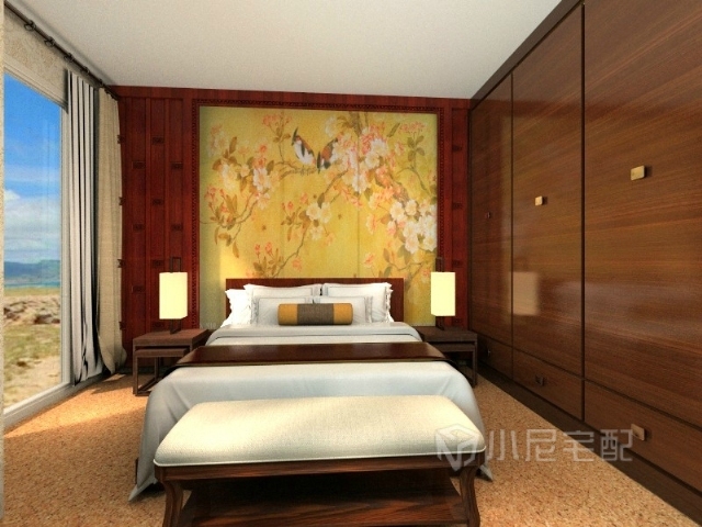 臥室在色彩方面秉承了傳統(tǒng)古典風格的典雅和華貴。