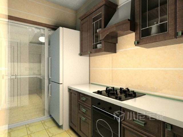 L型廚房,方正小空間的首選,開放式吊柜+地柜,超強(qiáng)大收納功能,常用物品隨用隨取。