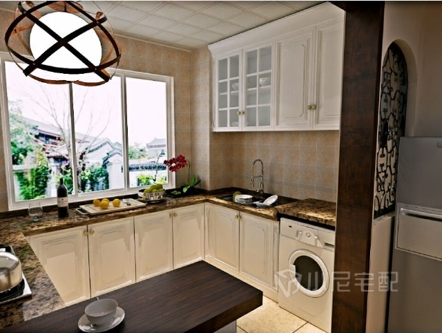 毛坯房是沒(méi)有留洗衣機(jī)位的,這個(gè)戶型廚房過(guò)于大,而衛(wèi)生間又過(guò)于小,所以合理利用空間把洗衣機(jī)改造到廚房里面來(lái)