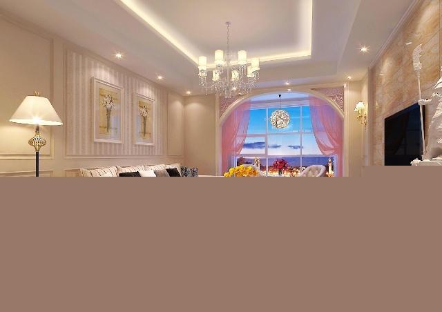 豎紋的背景和沙發(fā)顯得是如此的愜意。帶有雕花的埡口配上粉色紗簾也極為浪漫。