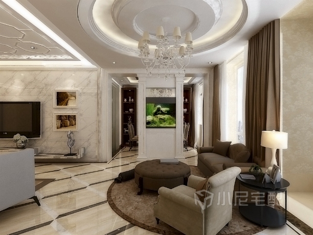 本案設計風格為簡歐風格,在注重裝飾效果的同時,用簡歐的表現(xiàn)手法和材質還原風格特點