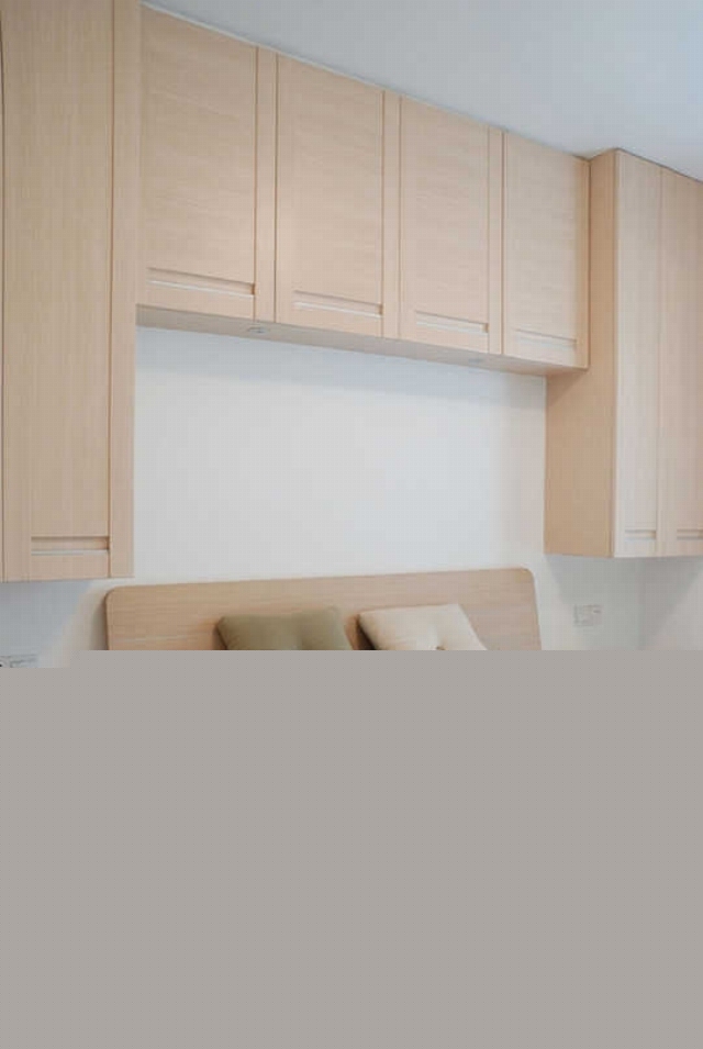 臥室不僅僅是休息的空間,同時可以在床頭增加一整排的吊柜,充分提高了儲物收納空間。