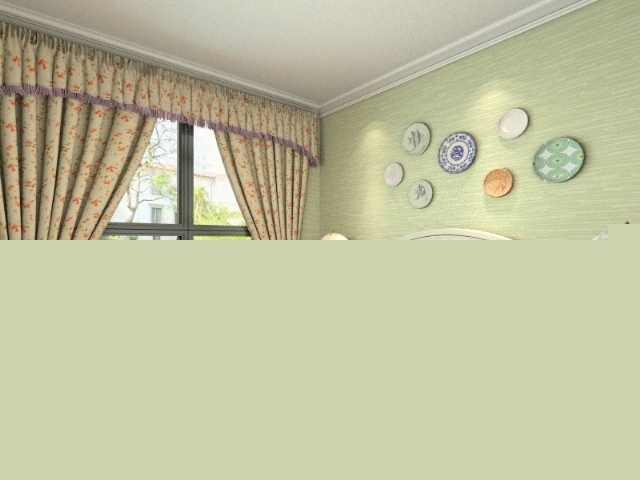 主體綠色的壁紙搭配淺藍(lán)色的窗簾,有沒(méi)有種小清新的感覺(jué)?