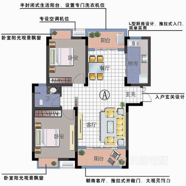 整個(gè)餐廳工整而細(xì)致,淡雅中透出輕松浪漫的主格調(diào)