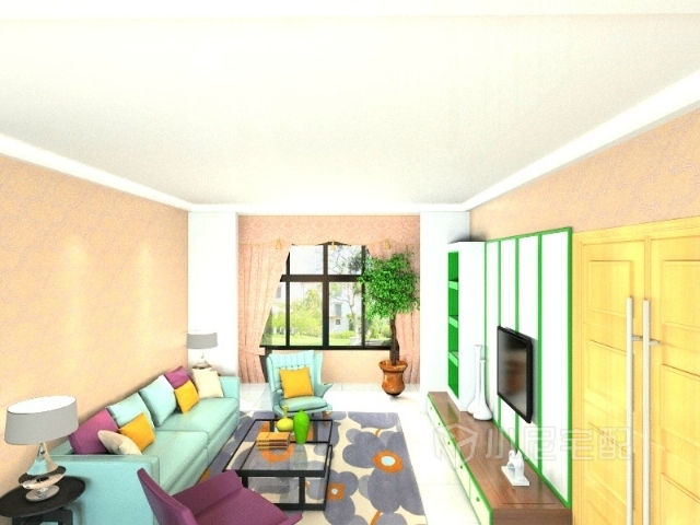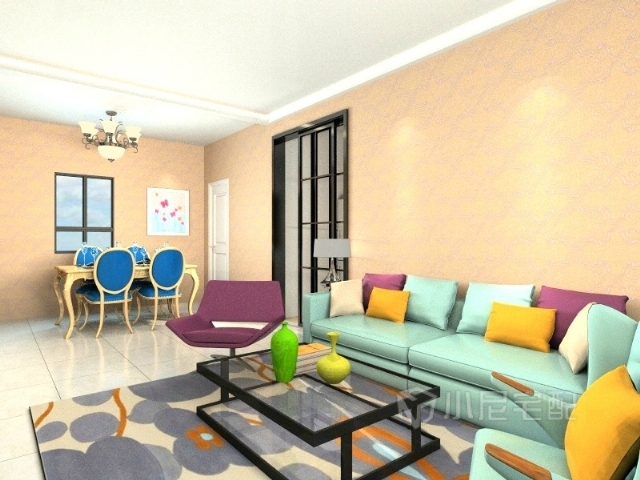 客廳屬于色彩的混搭,體現出年輕人的朝氣蓬勃。