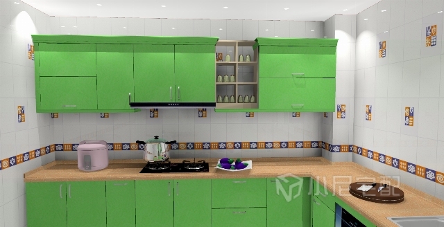 廚房用鮮艷靚麗的綠色,現在感爆棚,做飯成了快樂的一件事情。