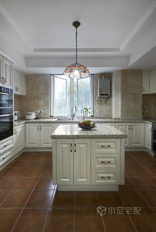 開放式的廚房,中間還有一個小倒臺,足夠一家人一起做飯了,氣氛一定很不錯吧。