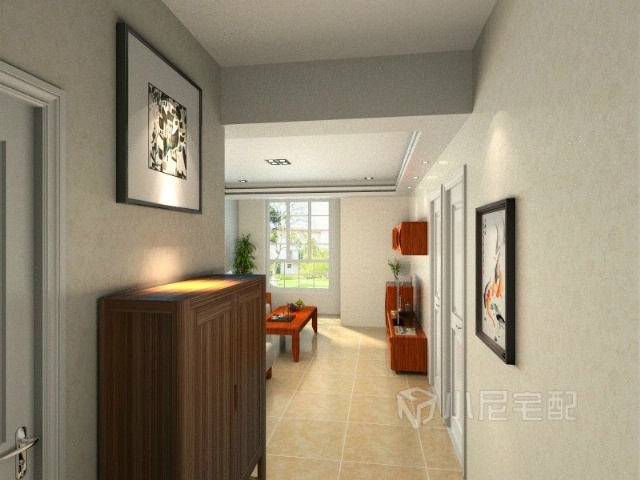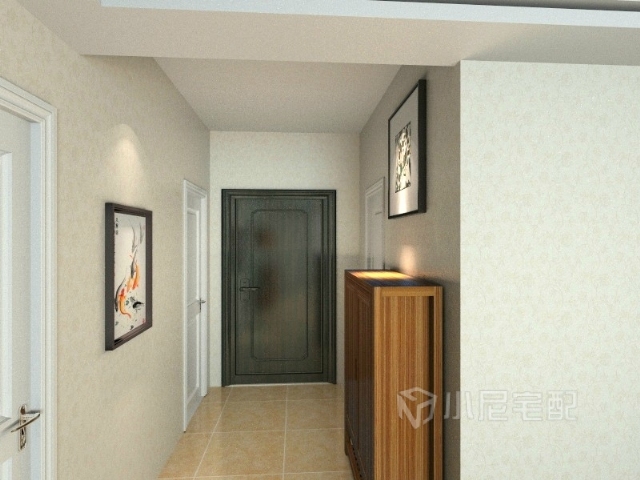 自然氣息的鞋柜,中式山水風(fēng)格掛畫,定下了風(fēng)格的基調(diào)