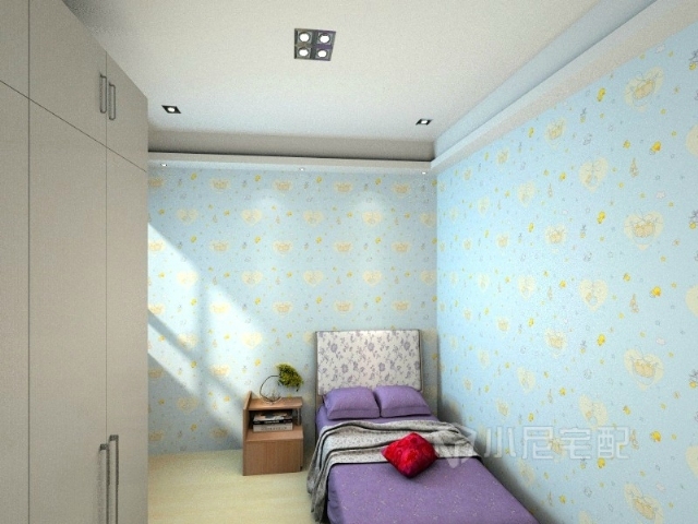 輕快、清新的壁紙、搭配夢幻紫色系列的兒童床,給孩子一個多彩的童年。