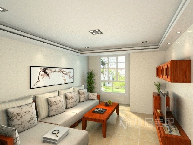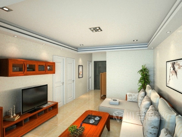 沙發(fā)、茶幾、電視柜一體色,加與壁紙強烈的對比色,具有更出眾的視覺效果。