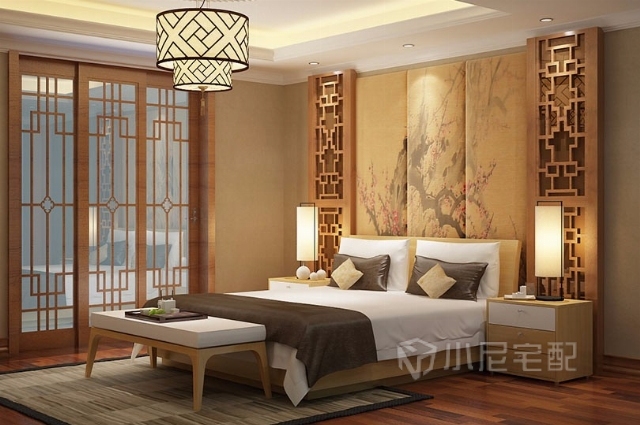 想要裝成新中式風格的臥室,其實并不需要過多的元素,簡單的一張屏風即可。