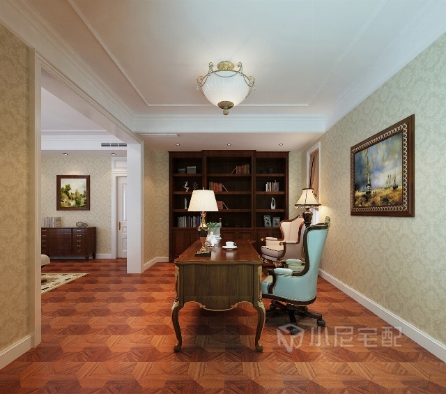 書房在傳統(tǒng)家具的基礎(chǔ)上經(jīng)過提煉使其帶有時尚的氛圍。