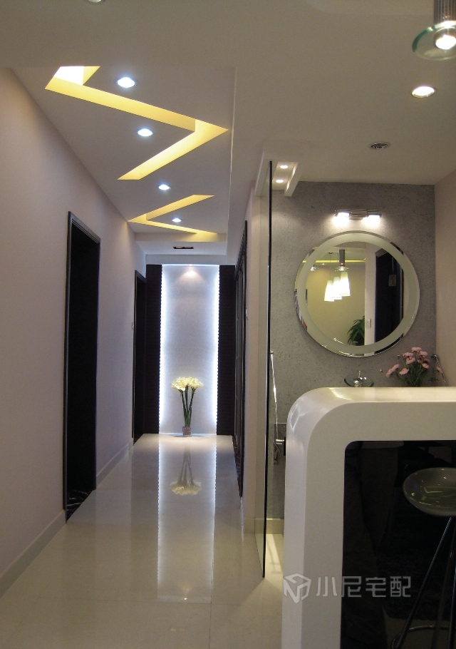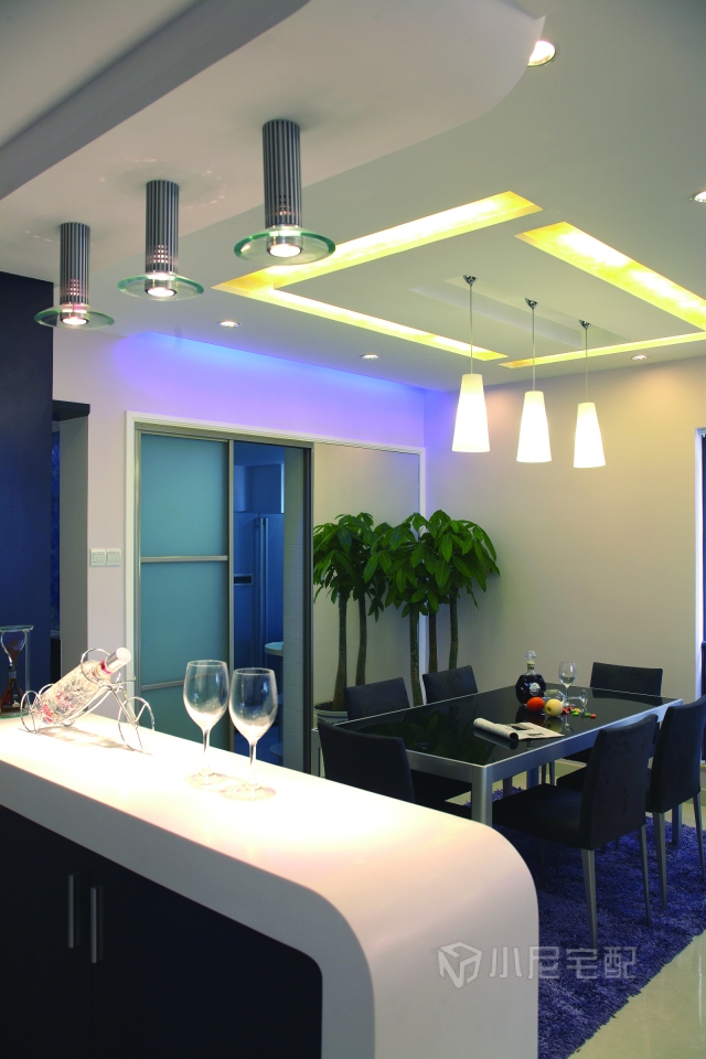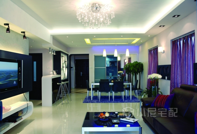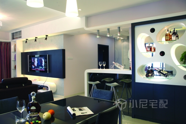 酒柜及沙發(fā)背景墻飾橢圓形蜂巢的奇特造型寓意專為新婚業(yè)主打造的甜蜜“愛巢”。而隱含在空間各部位的“L”造型元素是將男女主人姓氏拼音首位字母與他們的新居巧妙地結(jié)合在一起,全屋紫灰熏衣草色系綴以藝術(shù)玻璃、灰鏡等材質(zhì),營造出對比強烈的時尚氣息,彰顯出業(yè)主的不凡品味。家裝家具一體價:19萬。