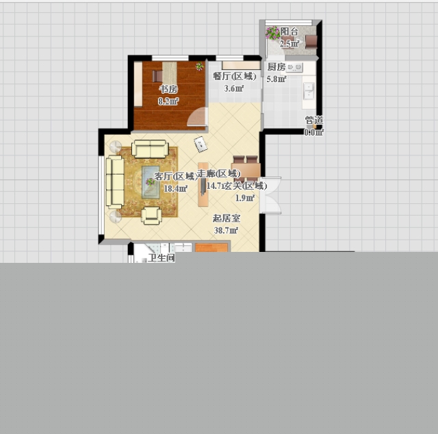 用吧臺將公衛(wèi)與客廳的區(qū)域進(jìn)行分割,使客餐廳及過道空間變得靈透而富有層次。