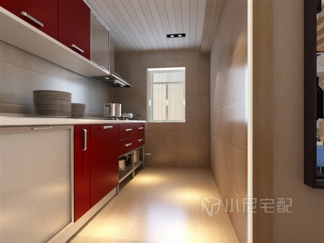 烤漆玻璃做的紅色櫥柜,既美觀又實用。
