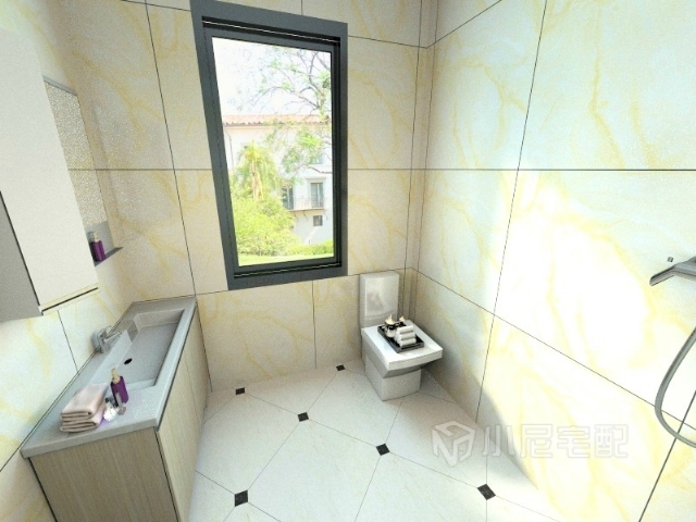 設(shè)計上點綴些紅色造型圖案豐富了視覺效果,巧妙地完成了簡約風(fēng)格在衛(wèi)生間的統(tǒng)一。 田園風(fēng)格的衛(wèi)生間:隨處可見自然元素,裝飾基調(diào)清新而素雅,白色是空間色彩的主調(diào)。