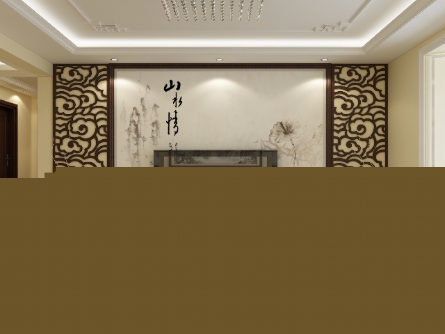 木質(zhì)茶幾和沙發(fā)與電視墻相互呼應(yīng),背靠大幅山水畫,凸顯主人胸懷廣闊底蘊(yùn)非凡,地面的造型拼花更是畫龍點(diǎn)睛,一幅完美的圖畫呈現(xiàn)在您眼前。