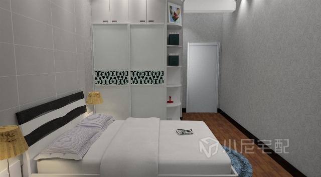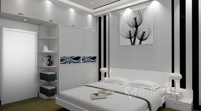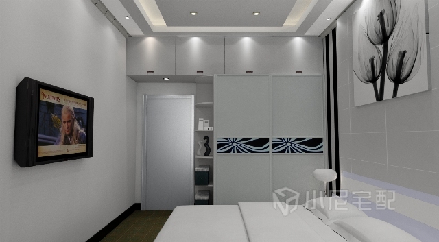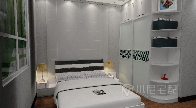 衣柜、弧形柜、頂柜,使小戶型臥室也有足夠多的儲(chǔ)物空間。