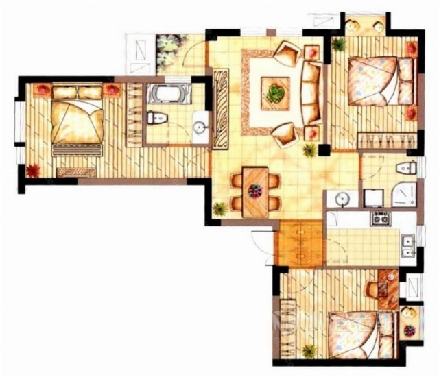 將實(shí)用美觀的餐桌與廚房緊密相連,形成一個(gè)開放式的烹飪就餐空間.營(yíng)造出溫馨的就餐環(huán)境。