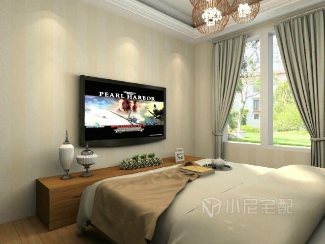簡(jiǎn)單的實(shí)木電視柜,幾件普通的擺設(shè),豐富又不失整潔