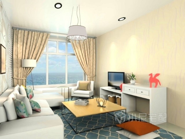 白色的沙發(fā),鮮艷的抱枕,顏色的互補(bǔ)融合,怎么看都那么溫暖