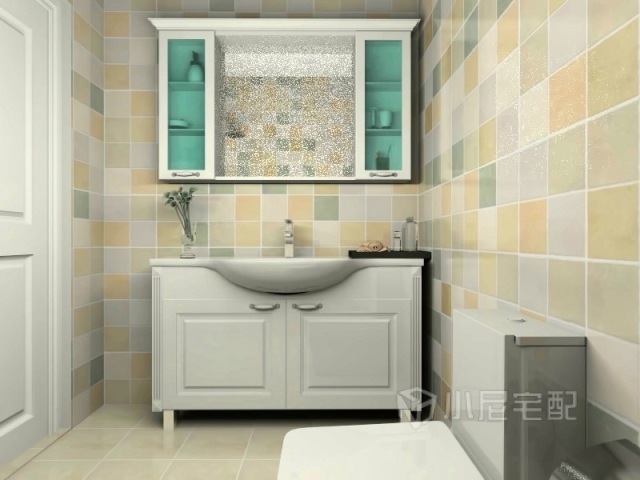 洗手池上面一個(gè)簡(jiǎn)單的儲(chǔ)物柜就可以把洗漱用品都收納起來,干凈清爽