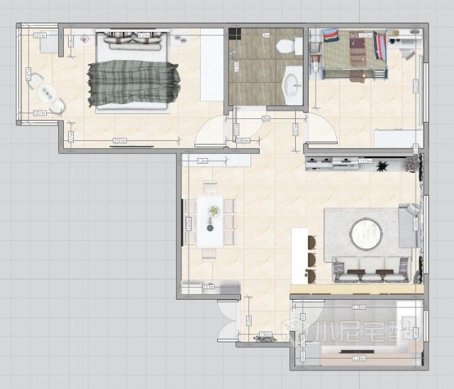 70㎡#兩室兩廳一衛(wèi)#混搭