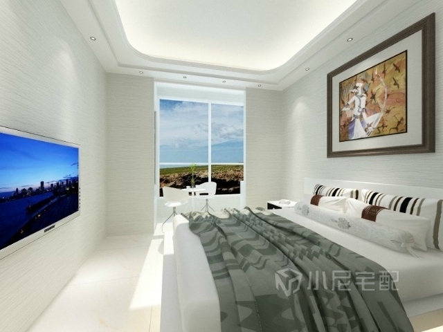 主臥室空間充足,可以分為兩部分,在陽臺區(qū)域增加休閑的桌椅