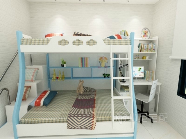 兒童房倍顯童趣,雙人床旁邊搭配書桌,供孩子學習