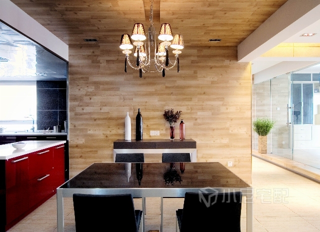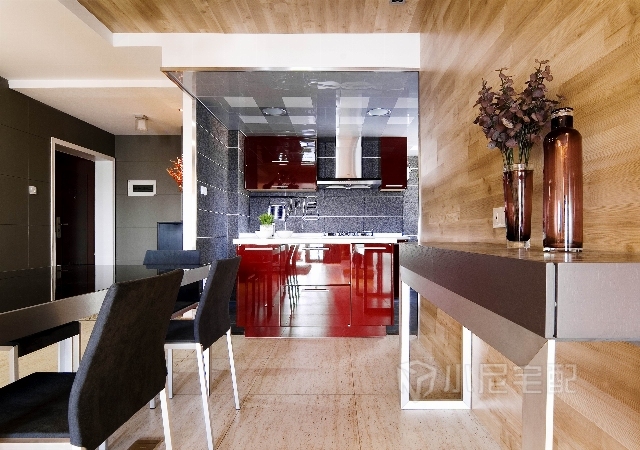 而那洋紅的廚房整體櫥柜點(diǎn)亮了一屋的鮮活。