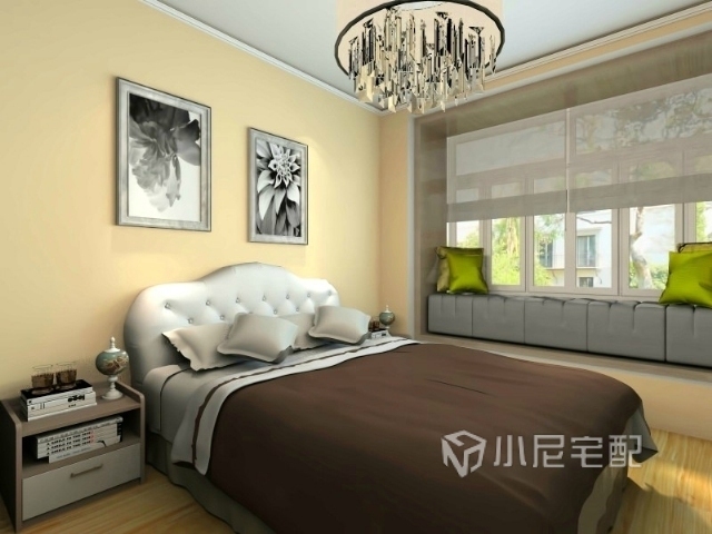 臥室以暖色為主,給人溫馨的感覺,陽(yáng)臺(tái)的飄窗可以在午后之余小憩一會(huì)。