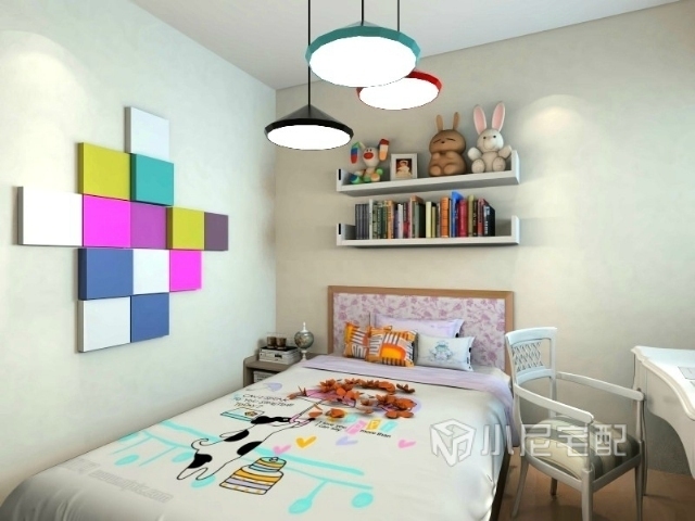 墻上的裝飾品色彩鮮艷,凸顯孩子的本性。