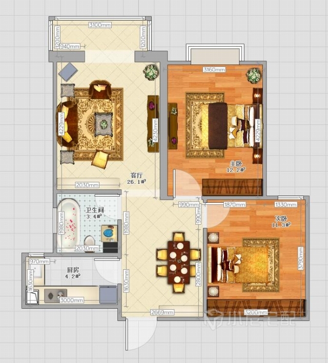 90㎡#兩室兩廳一衛(wèi)#新古典