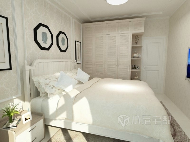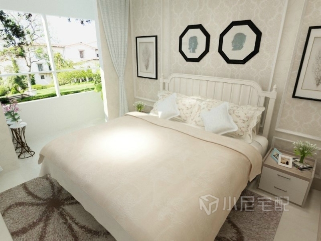 韓式田園的臥室布置較為溫馨,作為主人的私密空間,主要以功能性和實用舒適為重點。