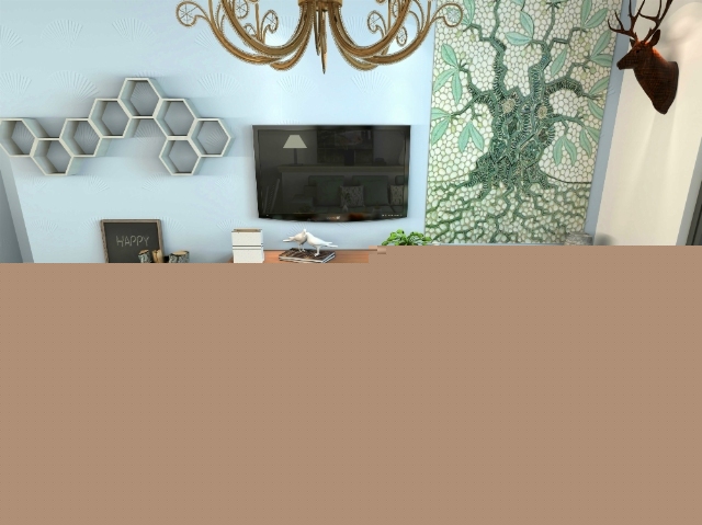 電視柜這個(gè)木質(zhì)很復(fù)古,搭配墻上就向往的回憶