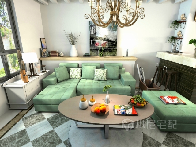 小尼宅配布藝沙發(fā)綠色搭配很到位,不似北歐的簡(jiǎn)單,也讓這種混搭融合在空間中。