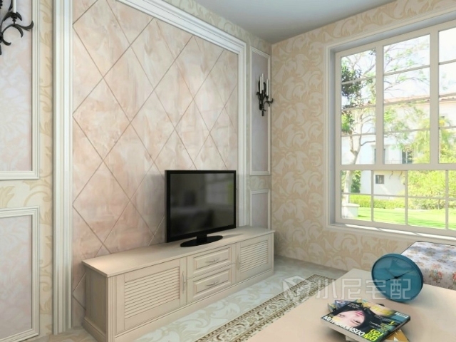 暖色的歐式背景墻,和整個(gè)空間融為一體。