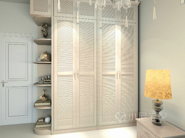 白橡色的衣柜,加一個(gè)圓弧轉(zhuǎn)角,使整個(gè)空間更加的自然,溫馨
