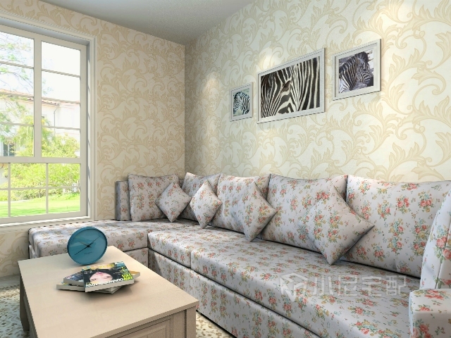 花色的沙發(fā)搭配白橡色的茶幾和暖色的壁紙,更加的溫馨,自然