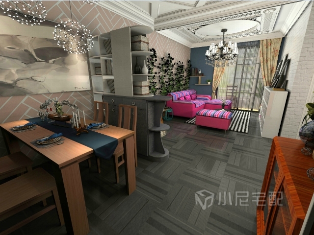 輕松,愉悅的氛圍,硬裝造型偏少。