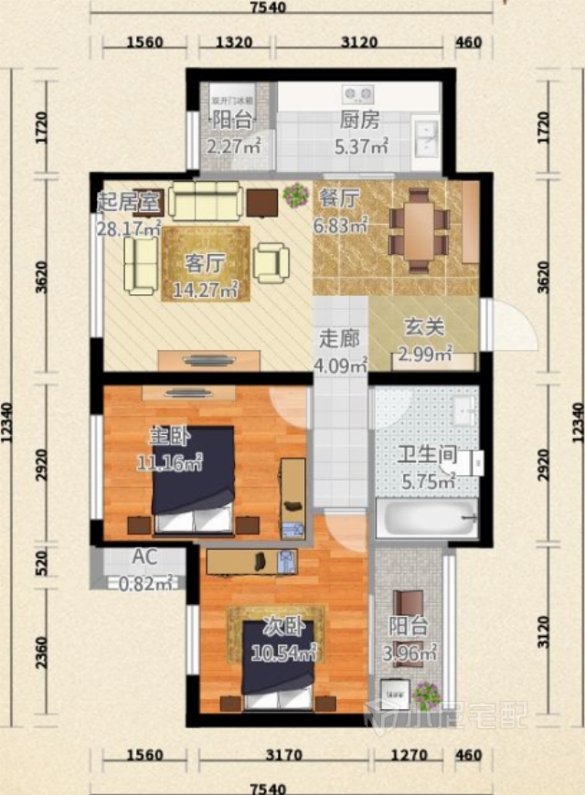 76.6㎡#兩室兩廳一衛(wèi)#中式