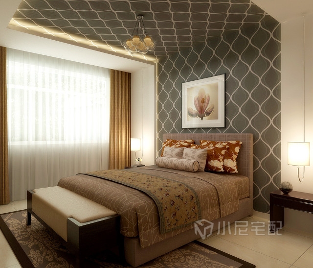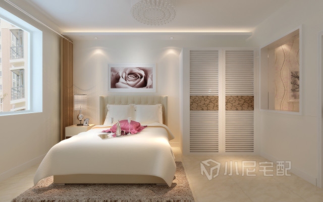 該房間以雅致風格為基調,詮釋出清新淡雅的一面。